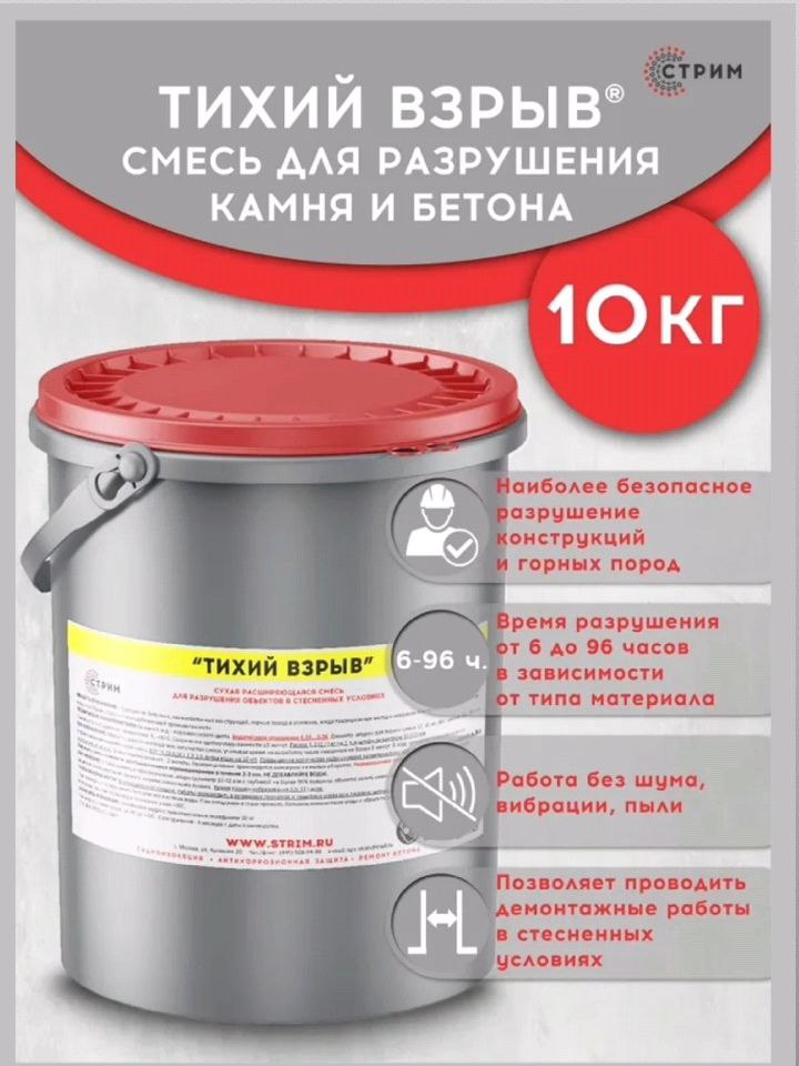 Расширяющаяся быстротвердеющая сухая смесь для разрушения бетонных конструкций и горных пород в стеснённых условиях.
